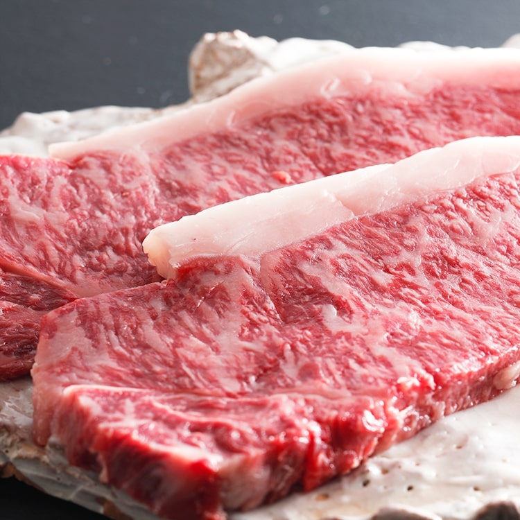 ロースステーキの特徴は、びっしりと入った霜降り。